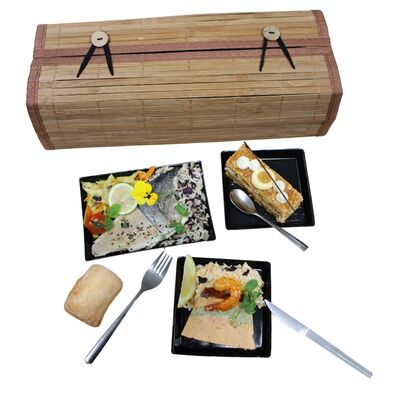 - Notre Co’frais Retour du Marché se modernise : une natte en bambou, des assiettes en pulpe de canne, pour un design novateur et une démarche plus RSE.