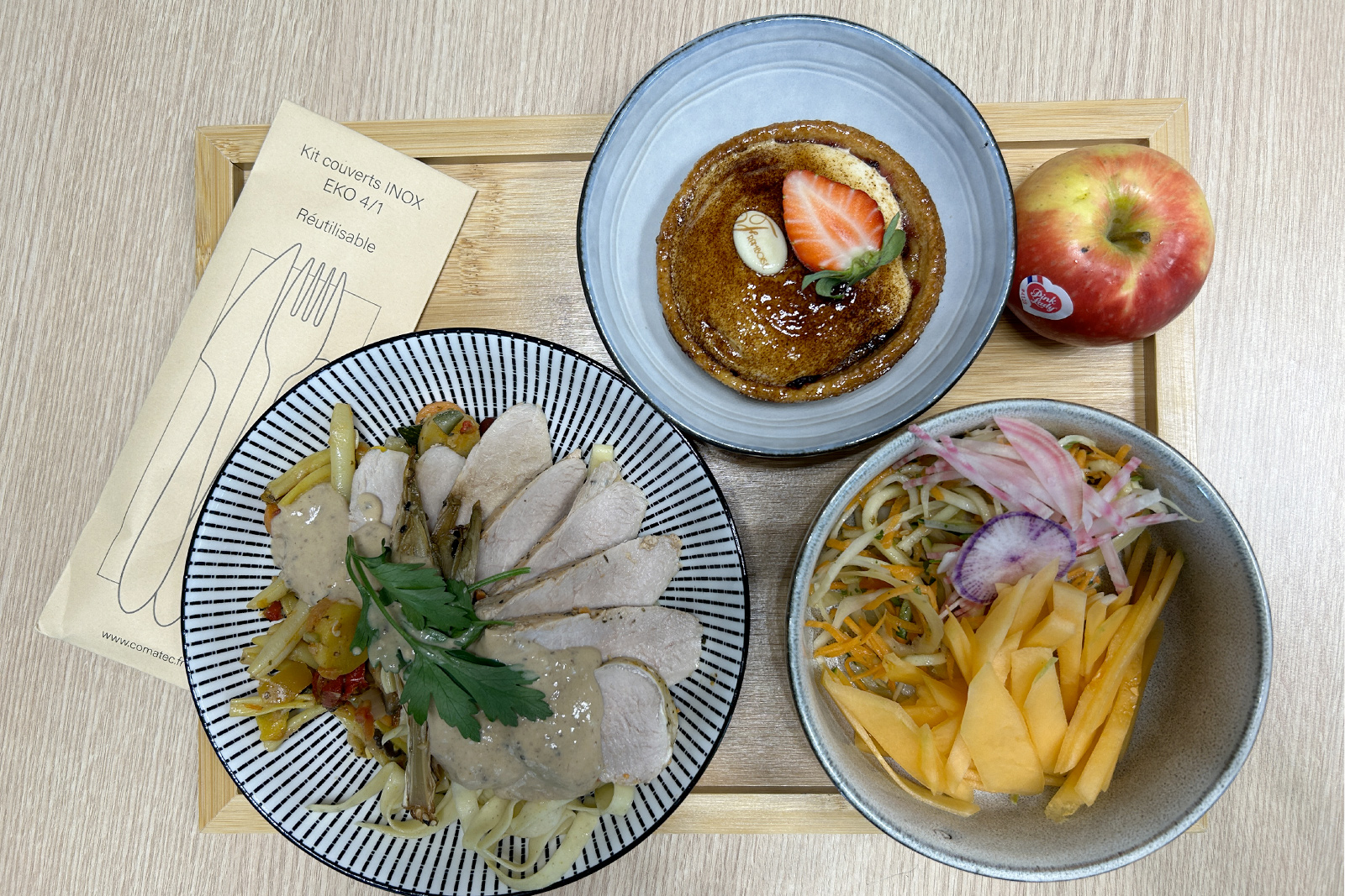 Nous nous adaptons aussi à votre budget : le prix de notre premier Co ‘frais repas froid est de 14 € HT, nos prix varient ensuite en fonction des options que vous choisirez (des couverts en inox, un plateau en bambou, que la vaisselle en porcelaine pour une formule zéro déchet).